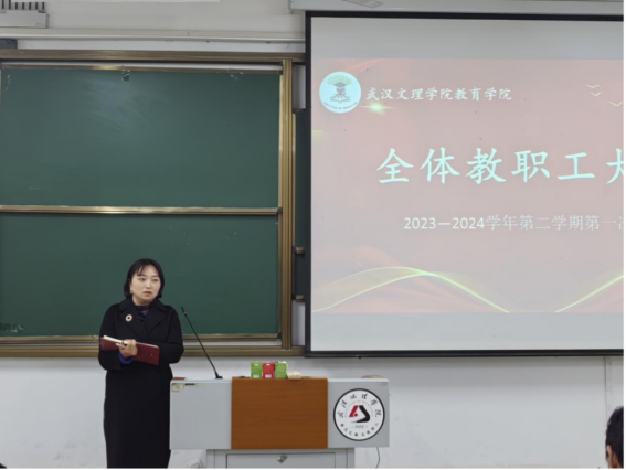 贺霞经理指出本学期会更加重视教学评估工作;配合好相关部门完成好师范认证工作;落实好毕业生毕业论文审核工作、员工初稿修改稿终稿预计上传时间以及毕业答辩的相关工作;最后贺经理强调了要切实关注员工的实习工作,不定期对实习工作进行检查。