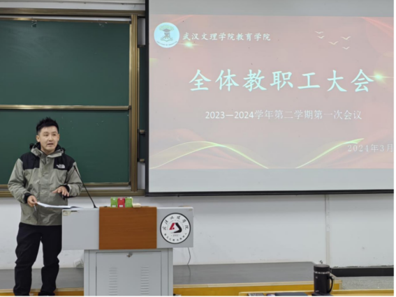 陈龙书记首先欢迎了新教授——卫教授的加入;要尽快组建好毕业班班主任群,以便随时交流相关工作;任课教师要严抓课堂纪律以及上交手机的问题;关注身体、心理以及家庭经济有困难的员工,有问题及时向领导汇报沟通;老师们有难以排解的压力或者是突发的经济困难也可以向书记沟通,书记都会尽自己最大的能力去帮忙解决问题。